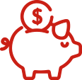 red art of piggy bank with coin going in slot